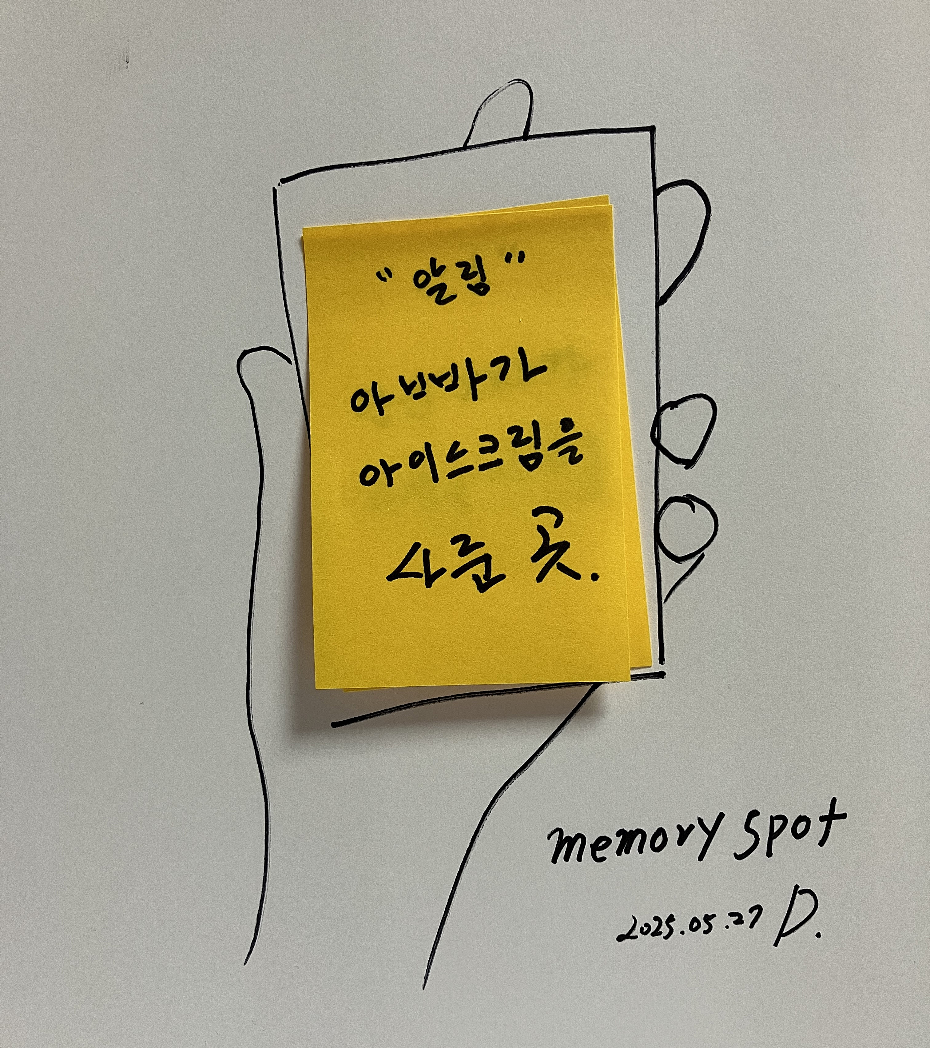 APP : Memory Spot 메모리팟_장소의 기억.장소에 대한 역사와 추억을 알려주는 앱.역사적 장소를 찾아가는 것이 아닌, 우연히 역사적 장소를 발견.우연히 특정 장소를 지나칠때 '알림'을 통해 장소에 담긴 역사를 알려주는 앱.* 메모리팟을 통해, 이사온 집 앞 공터가 위인의 생가인 것을 알게되었다. 1) 역사적 장소 (무료 + 광고)국내외 역사적 장소에 대한 정보(글&사진)를 제공. 2) 나만의 장소 (유료, 건당 300원)내가 태어난 곳, 내 아이가 넘어진 곳 등 특정 장소에 나만의 기억을 저장.저장된 장소정보를 공유가능. memo/sketch 2025.05.27